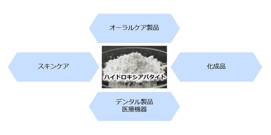 アパタイトは歯科材料や抗菌剤、スキンケア、食品など、さまざまに応用される素質があり、サンギではこれらの可能性に挑戦しています。