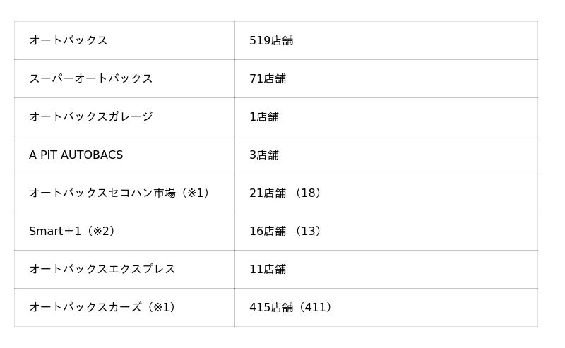 ご参考:オートバックスグループ国内店舗数 計1,057店舗