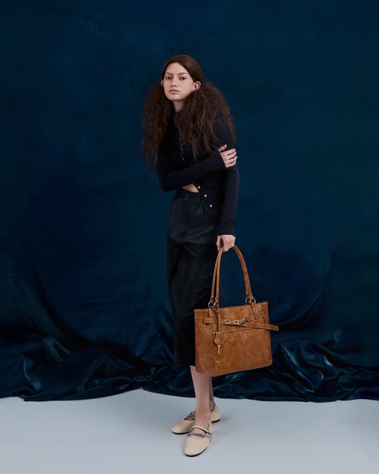 存在感のあるフック&チェーンのディテールは、クラシックなシルエットにモダンなアクセントを加え、洗練された印象を演出します。ラインアップには、ディストレス加工を施した柔らかなスラウチータイプと、より構築的でシャープな印象のストラクチャードタイプを展開。ソフトさと構築美のバランスを追求したデザインが魅力です。カラーはブラックやブラウンを中心に、タイムレスでありながら今のムードを感じさせる仕上がりとなっています。