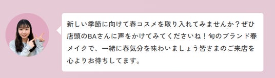 期間中、大丸・松坂屋アプリにて「ワンポイントタッチアップ体験」のアプリクーポンを配信。アイシャドウかリップかどちらか1カ所を、対象ブランドのビューティーアドバイザーがタッチアップいたします。