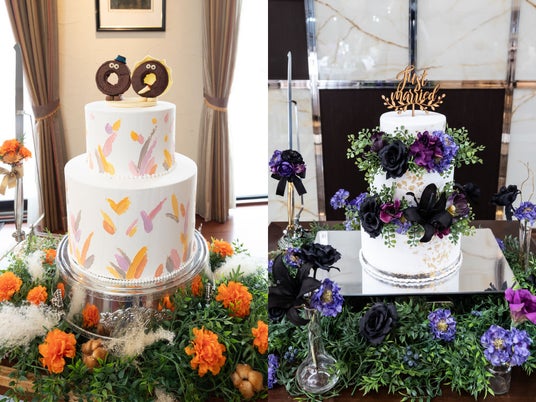 会場コーディネートにあわせて作られた2種のオリジナルウエディングケーキ
