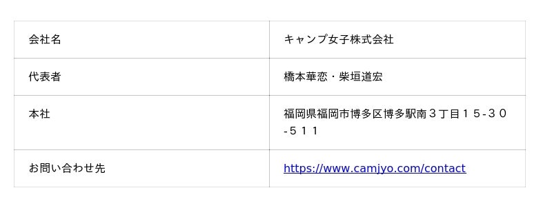 ・国内最大級女性向けキャンプコミュニティ「キャンジョ/ #camjyo」(https://www.instagram.com/camjyo/)