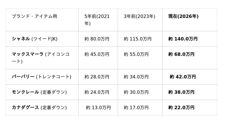 ■ 背景:3年で約1.2倍、5年で1.5倍以上の価格高騰。「衣類は消耗品から資産へ」