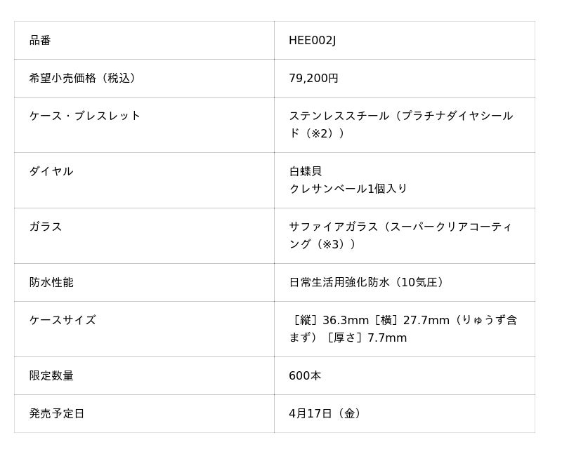 セイコーウオッチ株式会社(代表取締役会長 兼 CEO 兼 CCO:服部 真二、本社:東京都中央区)は、<セイコー ルキア>Happy Collectionから、2026 Warm Moments 限定モデルを4月17日(金)より発売いたします。希望小売価格は、79,200円(税込)で、数量限定600本です。
