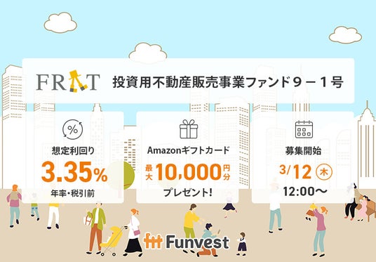 「未来をわかちあう投資」を提供する「Funvest(ファンベスト)」(以下、Funvest)は、「FRAT 投資用不動産販売事業ファンド9-1号」(以下、本ファンド)の募集を3/12より開始しますので、お知らせいたします。