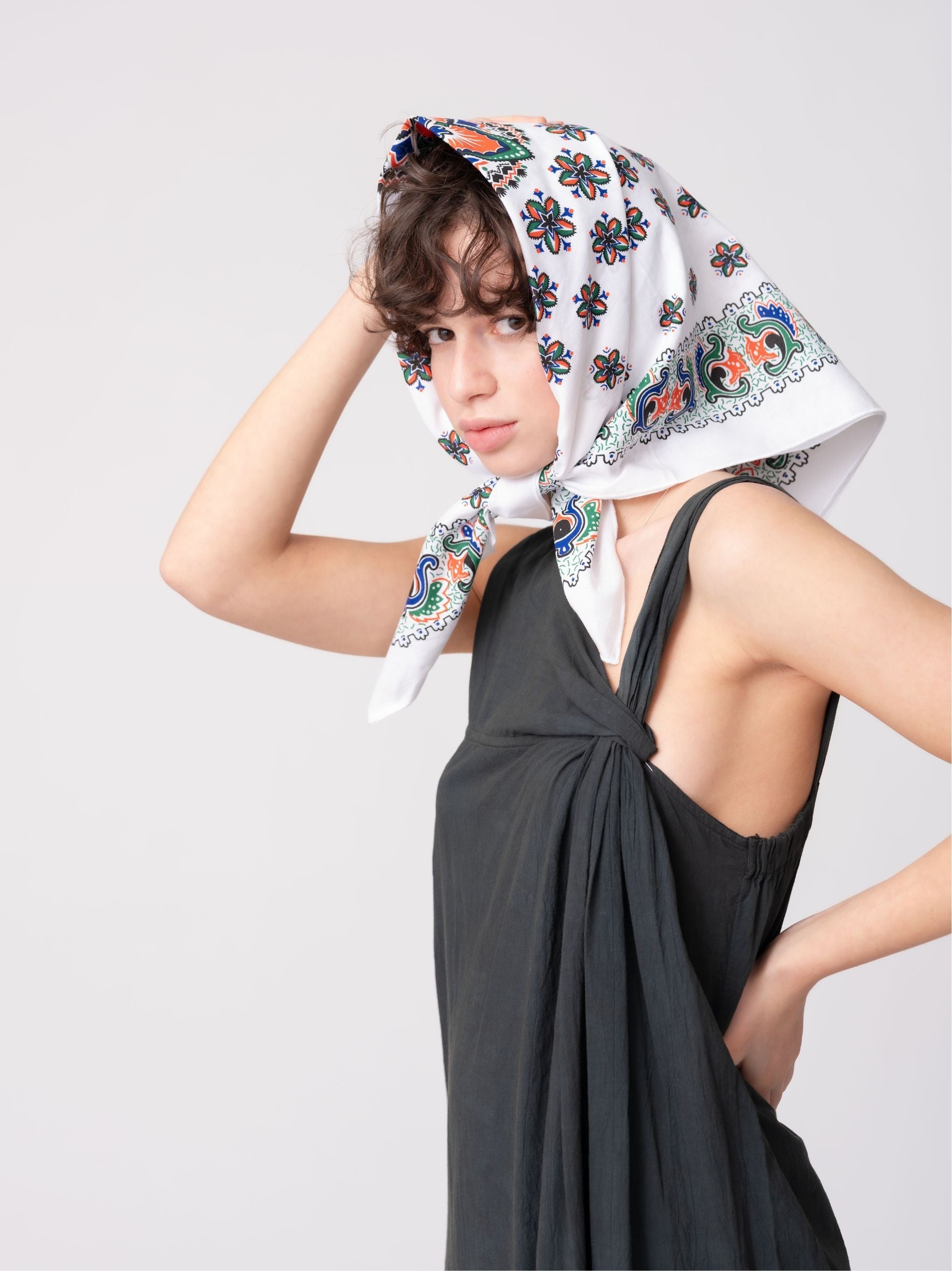 バスケットの中には、ファウンダーのトゥイトゥの母も愛用していたチュニジアの伝統的なスカーフ「Takrita」を使用したポーチが付属。このスカーフは単品でも展開しており、スカーフやバンダナとしてもお使いいただけます。