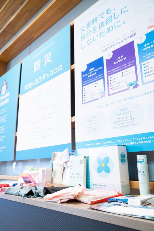 災害時にも続く女性のカラダとココロの変化に目を向け、日常の延長線上にある防災という視点から展示・情報発信を行いました。