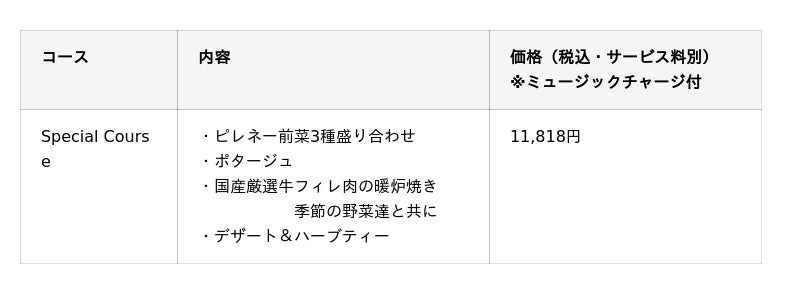 ■当日限定 スペシャルコース内容