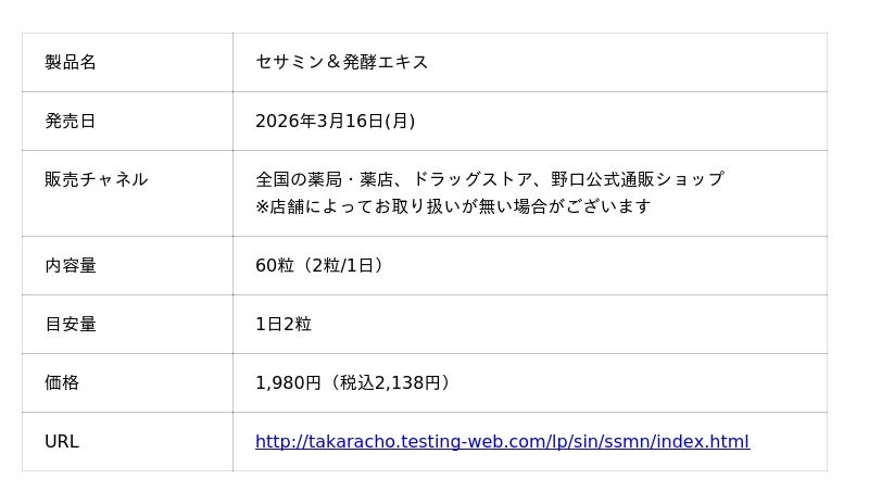 株式会社野口医学研究所は、働き盛り世代の毎日のコンディション維持をサポートするサプリメント、「GABA&グリシン」および「セサミン&発酵エキス」を、2026年3月16日(月)に発売します。