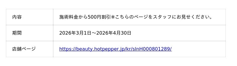 ホットペッパー店舗URL:https://beauty.hotpepper.jp/kr/slnH000801289/