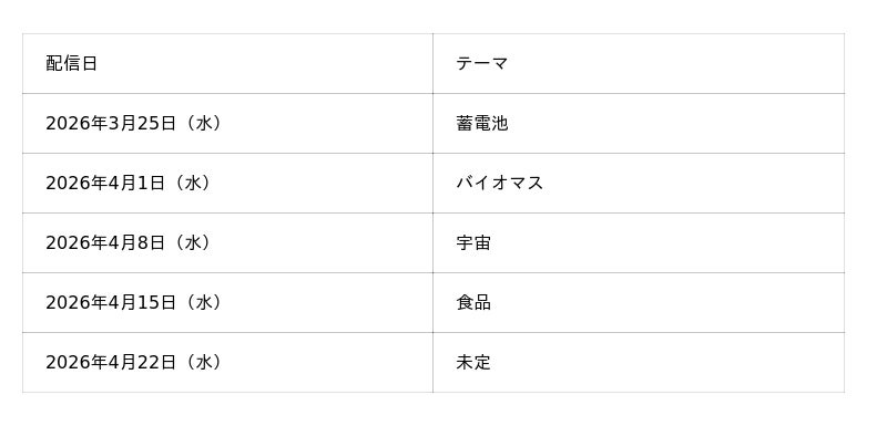 ■配信スケジュール及びテーマ(予定)