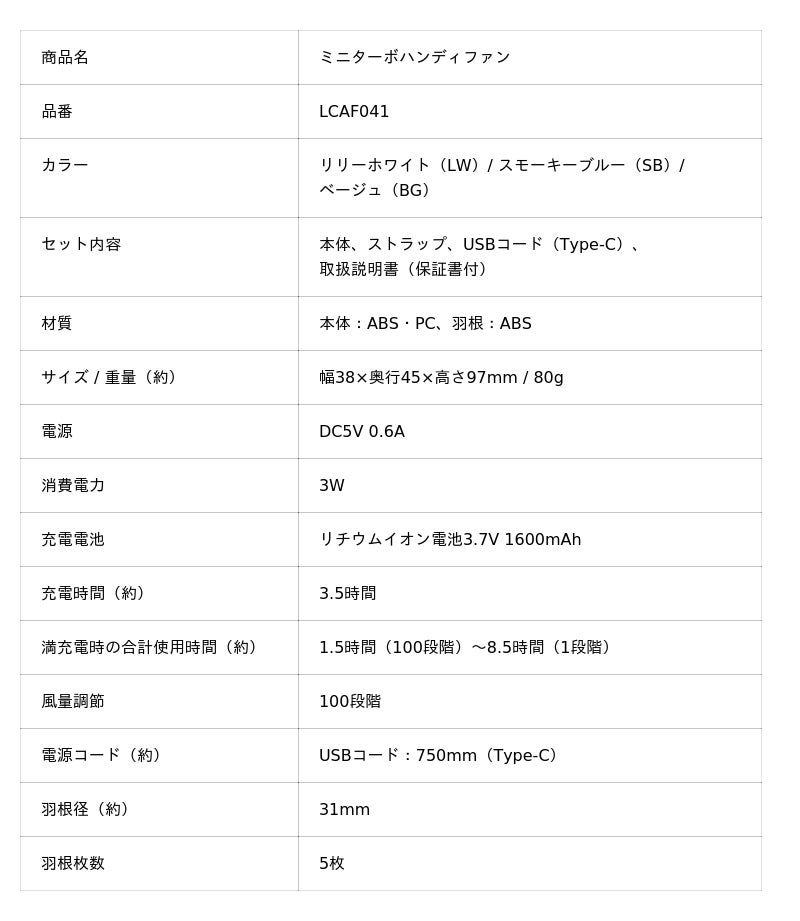 「ミニターボハンディファン」LCAF041