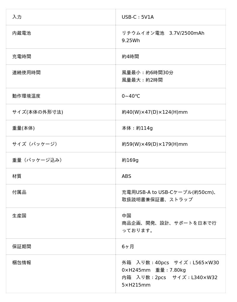 また、カバンの中での誤作動を防ぐ「2秒長押し電源ON/OFF」や、お子さまも安心して使える巻き込み防止など、細かな配慮も嬉しいポイントです。