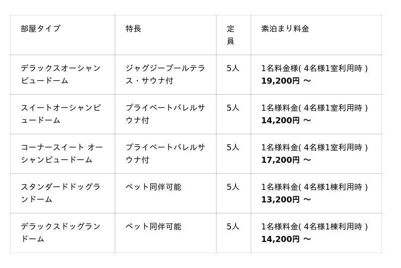 施設には、絶景のオーシャンビューを望むバレルサウナ付きルームや、愛犬と一緒に過ごせるプライベートドッグラン付きのお部屋をご用意。