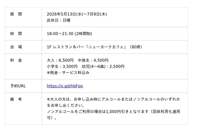 [期間] 2026年5月13日(水)~9月30日(水) ※日曜を除く