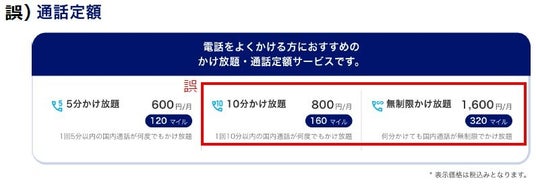 2026年3月24日(火)13:00~18:30の間、本リリース内に掲載しておりました「通話定額オプション」の価格およびマイル数の記載に一部誤りがございました。