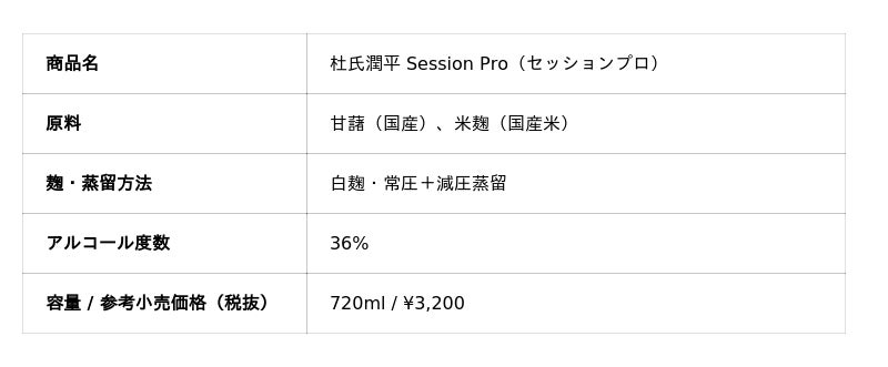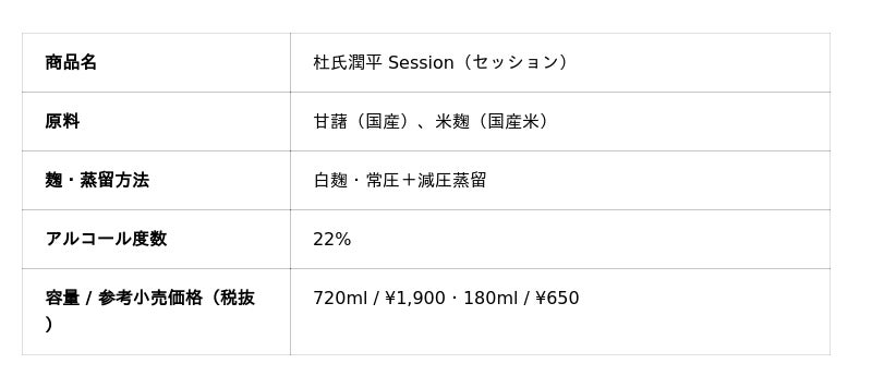 小玉醸造株式会社(宮崎県日南市・飫肥(おび)、代表:サンドバーグ・弘・ウィリアム)は、2026年3月21日(土)より、本格芋焼酎の新シリーズ「杜氏潤平 Session(セッション)」および「杜氏潤平 Session Pro(セッションプロ)」を全国の特約店を通じて発売しました。レストランやバーなど焼酎が届きにくかったシーンにも自然に溶け込む酒質とデザインを追求した、小玉醸造からの新たな提案です。