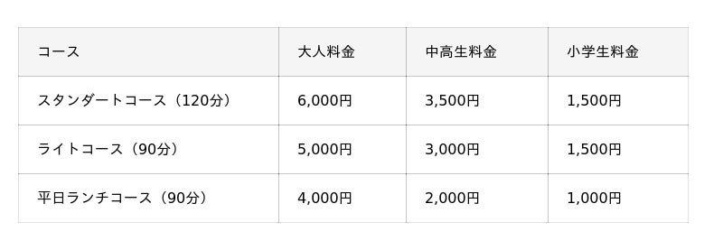 ※延長料金はお一人様30分1,000円です。