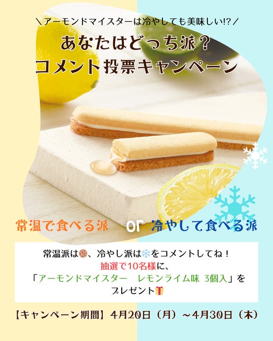 また、「実は冷やすと、もっとおいしい。」という新しい楽しみ方を提案する企画として、公式Instagramにて「常温 vs 冷やし 食べ比べキャンペーン」および「アーモンドマイスター(R)の“冷やして楽しむ食べ方”を発信するアンバサダー募集」を、2026年4月20日(月)~5月10日(日)の期間で実施いたします。