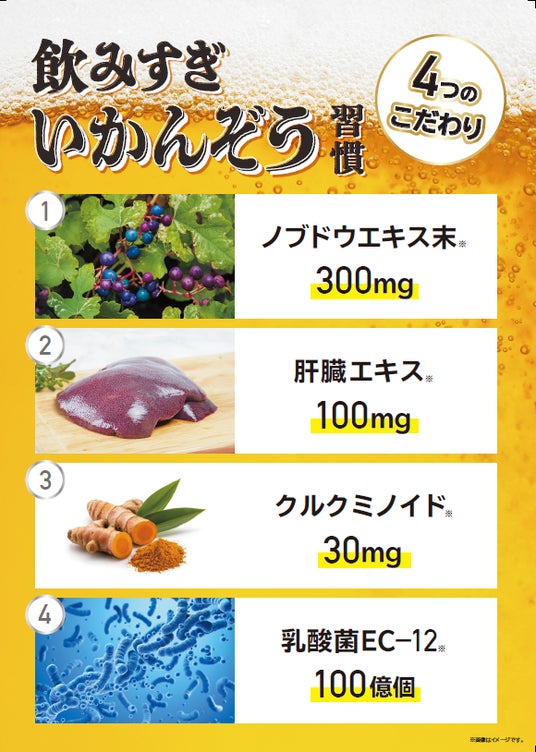 「飲みすぎいかんぞう習慣」は、飲酒の機会が増えた人々をサポートするために開発された、日々の生活を健康的に支える新習慣サプリメントです。体感性の高いこだわりの原料を配合することで、消費者のお悩みにしっかり寄り添います。