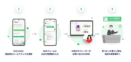 本サービスにより、お客様はスマートフォンから簡単にお忘れ物の検索・お問い合わせが可能となり、これまでのように複数の施設へ個別にご連絡いただく手間が軽減されます。さらに、施設を横断した検索により、よりスピーディーなお忘れ物の発見・返却を実現します。
