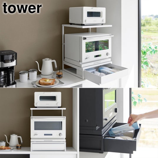 引き出し付きキッチン家電下ラック タワー 2段