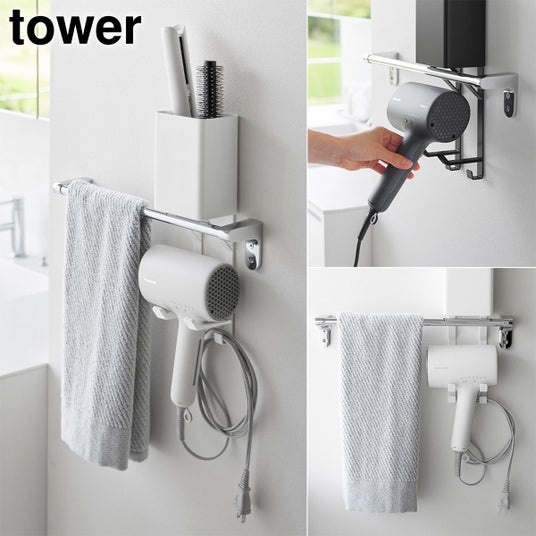 タオル掛け上ドライヤー&ヘアーアイロンホルダー タワー