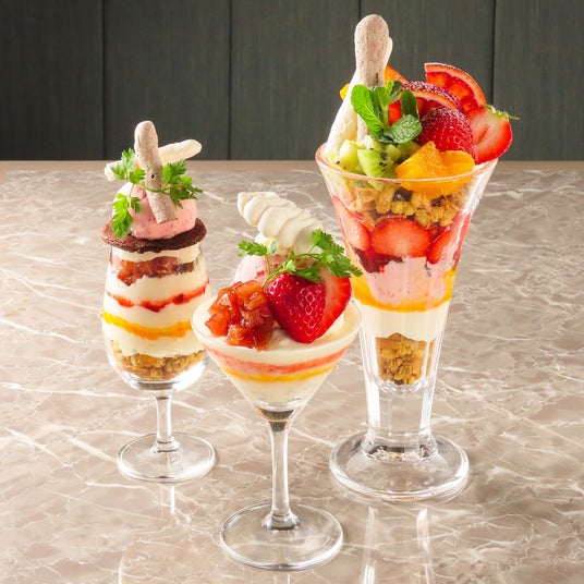 季節のHESTIAパフェ季節のフルーツをたっぷり乗せたパフェ。SNS映え間違いなし。