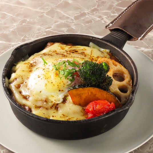 焼きチーズカレー近江牛を煮込んだカレーにたっぷりの焼きチーズを乗せた一品。