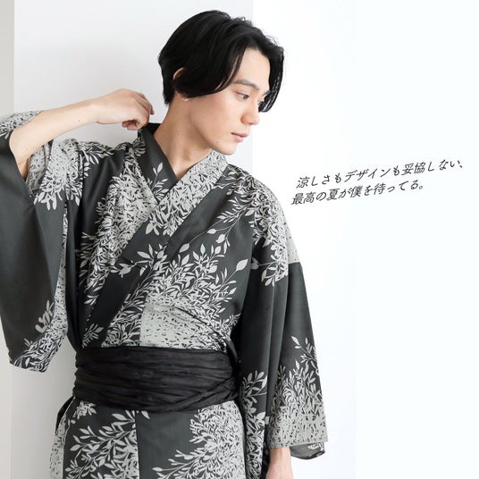 暑がりさんにおすすめ!「ムレない」吸水速乾素材で真夏も快適「浴衣は暑くてムレる…」というイメージを覆す、高機能ポリエステル素材を採用しています。優れた吸水性と高い水分拡散力により、汗をかいてもすぐに乾き、真夏の不快なムレを軽減します。さらに、ストンと落ちるシルエットが、着るだけで自然な「こなれ感」を演出してくれます。