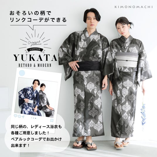 帯はどんな色でも合わせやすく、アクセントとして強い色や柄物を添えても格好いいです。共通でメンズ浴衣もあるので、カップルやご家族でリンクコーデもおすすめ!