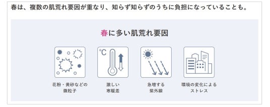 また、dプログラムは、春には肌荒れ要因が複数あることに着目。花粉や黄砂などの微粒子・紫外線など、春の複合悩みに対応したコミュニケーションを展開します。