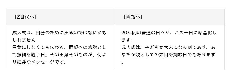 成人式の在り方を一緒に問い直したいと思う企業・団体の方がいれば、ぜひ声をかけてください。