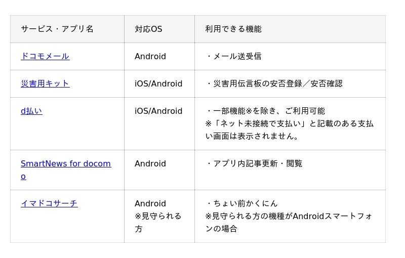 ドコモが提供するアプリのうち、本サービスに対応するアプリは以下のとおりです。そのほかの対応アプリについては 「サービスページ」をご確認ください。なお、提供機能に一部制限がある場合があります※6。