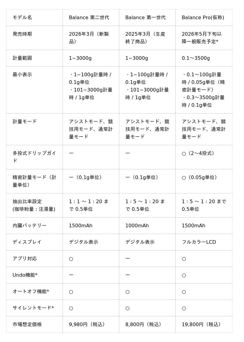 *Balance Pro(仮称、名称未定)についてはこの度発売する「Balance 第二世代」の上位モデルに位置し、現在「応援購入サービス Makuake」にてクラウドファンディング実施中です。一般販売は2026年5月下旬以降を予定しております。