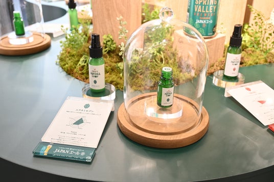 会場入り口(1F)入ってすぐの空間では、嗅覚のアーティスト・和泉氏が「SPRING VALLEY BREWERY」を代表する3商品それぞれの個性豊かな香りを生み出すホップ「ムラカミセブン」「IBUKI」「ネルソンソーヴィン」の複雑な香りを分解、アロマフレグランスとして再構築したイベント限定のオリジナルアロマを展開しています。