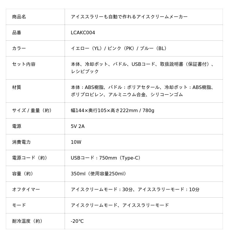 「アイススラリーも自動で作れるアイスクリームメーカー」LCAKC004