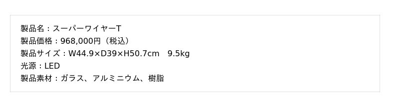 スーパーワイヤーが体現するのは、装飾性を帯びた「工業的美学」です。幾何学的な造形に工業ガラスを配し、ネジなどの機械要素をあえて露出させることで、独自の構造美を追求しました。