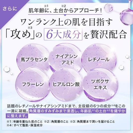 重要な成分にはナノカプセル化・リポソーム加工を施すことで、角質層までの浸透設計にこだわりました。