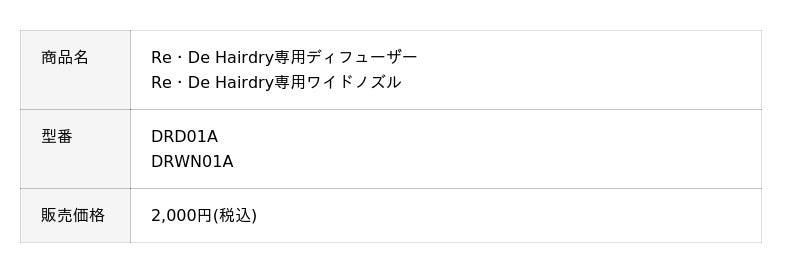 「Re・De Hairdry+(リデヘアドライ プラス)」および「Re・De Hairdry(リデヘアドライ)」専用のアタッチメント2種が登場します。