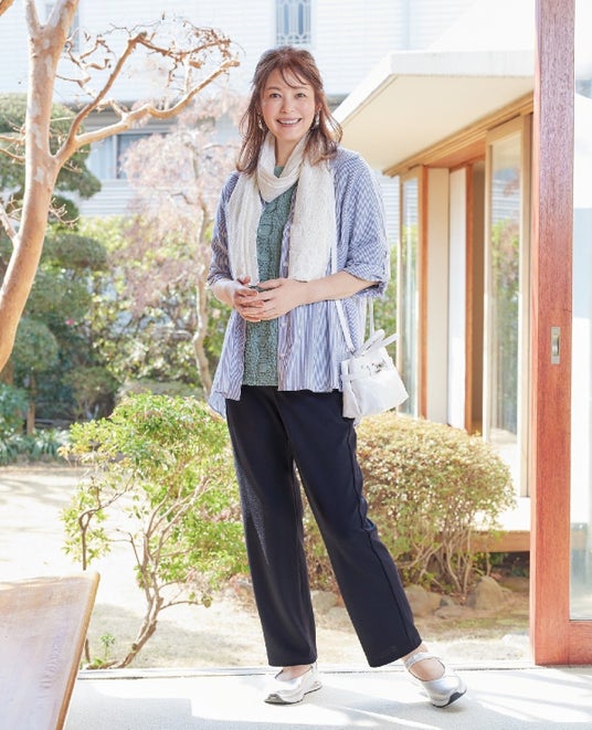 ・さっと羽織れるシャツは温度調整がしやすく、襟付きできちんと感を演出します。