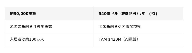 日本で実証済みのAI見守り技術が、米国の高齢者ケア市場へ。約8兆円規模の北米介護市場に参入し、多言語展開による継続的な企業価値向上を推進します。
