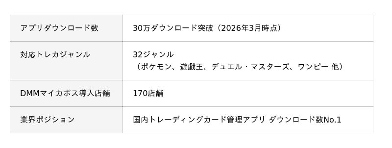 Mycalinksは「トレカの相場・購入・管理をひとつのアプリで完結させる」というコンセプトのもと、2023年4月のリリース以来、継続的な機能拡充を重ねてまいりました。2026年3月時点では、国内トレーディングカード管理アプリとしてダウンロード数No.1を達成しました。