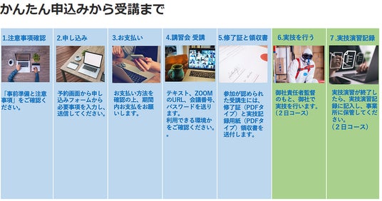 今までの講習は大都市などの中心部などの会場が多く、会場まで通うのに時間や交通費が無駄という方、大人数での会場は感染リスクで不安という方もかなり多いのも事実です。