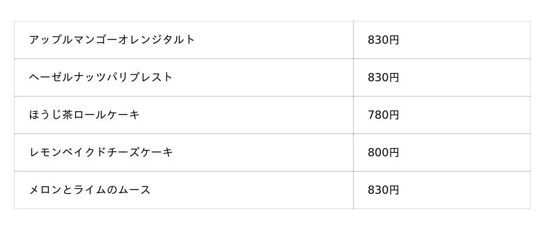 スイーツメニュー / イメージ