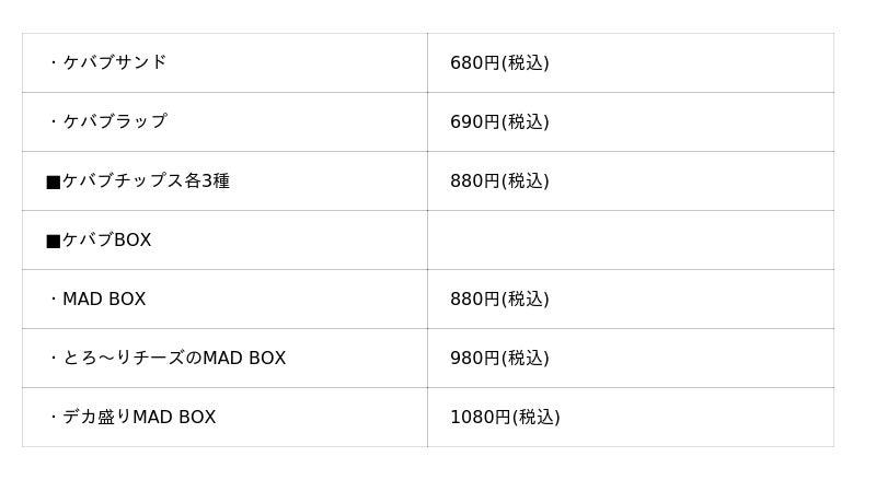 ケバブチキン、ポテトフライ、キャベツ、ミニトマト、アーリーレッドの入ったオールインワンBOXの”MAD BOX”なども販売しております。