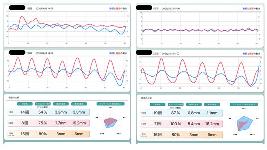 当店では東京科学大学認定の呼吸計測アプリ「BREVI」を使用し呼吸を可視化することでトレーニング効果の評価を行います。