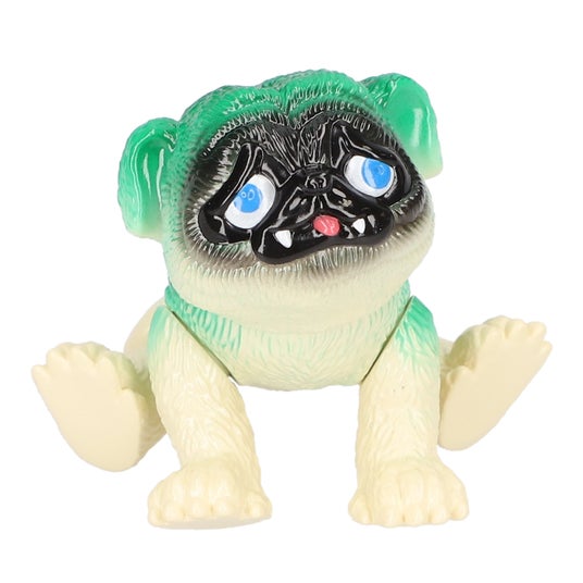 丸みのあるフォルムや深いしわ、つぶらな瞳などパグの特徴を捉えた愛嬌のある姿と、ちょっと出ている牙や体全体の派手なカラーに怪獣要素が合わさったキャラクター「パグ獣」の見た目と、首と手足の関節が動く可動ギミックはそのままに、高さ5cmほどのミニチュアサイズに仕上げました。