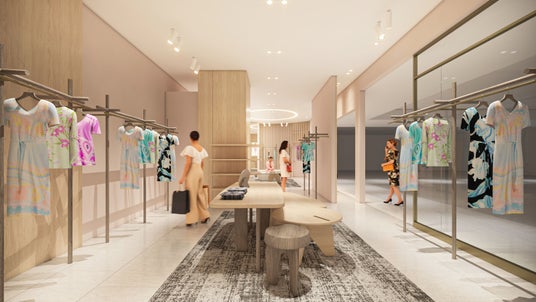約102.97平方メートルのゆとりあるショップ空間には、ブランドを象徴するプリントウェアを中心に、ドレスやトップス、アクセサリーなど最新コレクションを幅広く展開。パリのエスプリが漂う上質な空間の中で、レオナールならではのクリエイションの魅力をご紹介いたします。