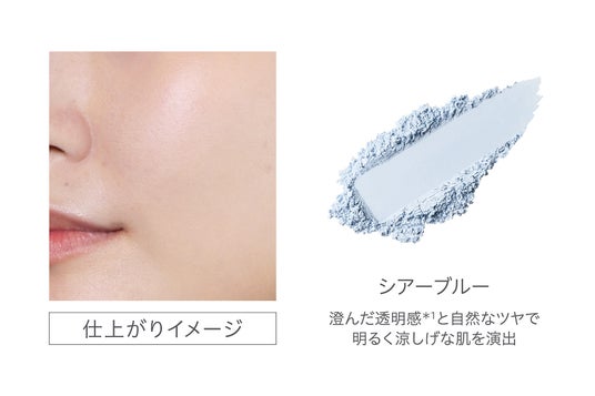 淡いブルーのカラー補正効果で肌の赤みを抑え、澄んだ透明感*¹と自然なツヤをプラスします。